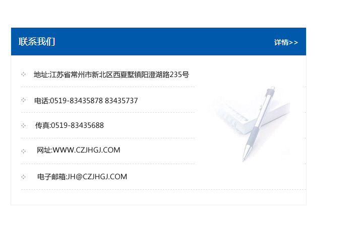 地址:常州市新北區友邦商務大廈1幢16、17層  電話:0519-85101652  傳真:0519-85112595  郵編:213022  網址:www_cz-jiayue_cn.szkung.com  郵箱:xiajifengaa@163.com